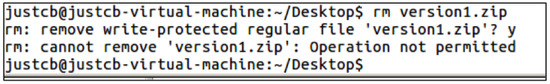 It is important to note that the default setting for standard users is assumed to be non-admins, with the access-control module configured as a system daemon with root access privileges executing the chattr command; this would inherently ensure the protection of newly created versions in the version-control directory. Any attempt to modify or delete a protected file will not be permitted, as shown in the example in Figure 5. This is considered a valid setting for two reasons: (i) users usually do not log into their systems as admins. In fact, one of the best practices of computer usage emphasizes that users never log in as admins. (ii) A recent report showed that 90% of ransomware instances in the wild could infect systems and encrypt files without administrative privileges [58]. This indicates that while users log in as non-admins, there is still a high possibility that Ransomware may encrypt their files. In our proposed solution, ensuring a specific access control process with administrative privileges will protect files created/edited by non-admin users.
