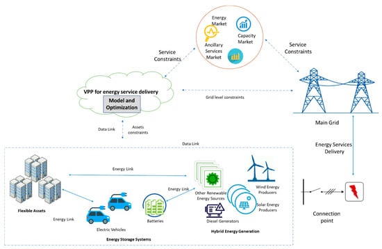 - VPP coordinates energy resources for collectively providing energy services in different markets or directly to interested stakeholders such as a DSO;