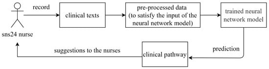Our main task is to support the nurses with the clinical algorithm’s choice. This can be framed as a supervised multi-class classification problem using as input the dataset we obtained from SNS24 calling records. The existing clinical dataset includes clinical texts and their corresponding clinical pathways are used for training a deep neural network model. Given a new record, the attribute “clinical pathway” is the class aiming to be predicted. As Figure 1 presents, the trained neural network model is used to predict the clinical pathway given the information collected by the nursers, and the predicted clinical pathway is finally returned to the nurse as the suggestion.