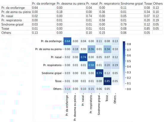 Within the original 3-month dataset, there are 52 clinical pathways from the total of 59 defined by the SPMS. The proportions for each clinical pathway varies significantly. For example, Tosse (Cough) has the highest number of records and accounts for 14.006% of the calls, while Pr. por calor (Heat problems) represents only 0.001% of the calls; six of the clinical pathways have over 10,000 calls, and three under 100. Table A1, in the Appendix A, lists the existing 52 clinical pathways, their record numbers, and the proportions to the whole dataset.