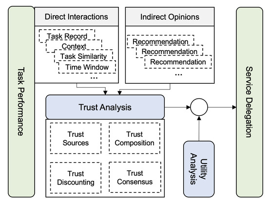 26]. Specifically, trust not only reflects the security and reliability at the IoT system level, but also reflects the degree of cooperation between two IoT objects when establishing an interactive relationship. The establishment of trust will stimulate cooperation and improve security in the process of service [