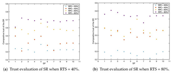This part of the experiment analyzes the impact of RPE and RTS on the evaluation of SR’s trust. As shown in