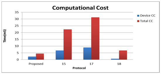 The obtained results in Table 4, show that the proposed scheme presents the lowest total computational cost (TCC) in Figure 11 including device computational cost (DCC), despite the fact that device computational cost is slightly higher comparatively to [18].