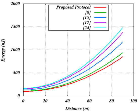 In addition to better performances at device level (i.e., low computational cost, low communication and storage overheads using relatively limited number of exchanged short messages), the proposal uses longer cryptographic keys of 160 bits, comparatively to other protocols using 128 bits hash values for cryptographic functions [8]. This leads to a more robust cryptographic solution (160 bit ECC public keys is equivalent to 1024-bit RSA cryptosystem [17]). Compared to our scheme, the weak point of the scheme presented in [24] is its higher energy consumption, as shown in Figure 13.