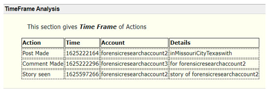 Instagram data artifacts in IndexedDB storage are suitable for utilization in time frame analysis for the actions of its users.