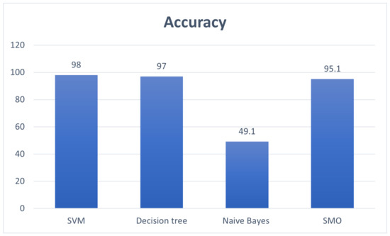 Figure 6 provides the evaluation of accuracy of our methodology with the state-of-the-art works. Figure 5 shows that the SVM produces slightly better accuracy than other existing malicious JavaScript detection methods.