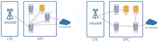 Therefore, no handover is needed between the network’s base stations if the end device is mobile. That is, the end devices in LoRaWAN are not associated with a determined gateway. Handover is also enabled for mobile devices in Sigfox IoT networks [8,10,18]. NB-IoT is designed based on the existing LTE functions; however, many segments have been removed to keep NB-IoT simple, reducing the costs and minimizing its power consumption. This optimization occurs at the cost of removing the handover, so NB-IoT has the disadvantage of not being suitable for mobile IoT end devices [8,23].