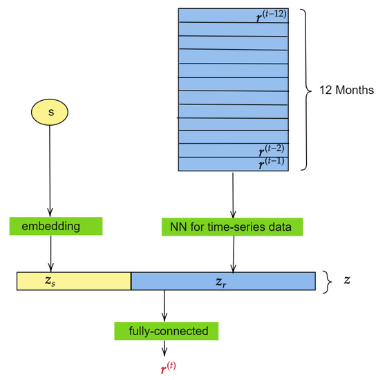 where is a set of new features that summarises the information concerning the seasonal effect and represents s in a way that is optimised with respect to the desired output in a real-valued dimensional space. Information related to the previous time lags of is processed by neural networks layers specifically designed to process sequential data such as LSTM, GRU, or CNN layers. For illustrative purposes, we will consider the LSTM networks, but an interesting comparison among these different neural networks architecture will be carried out in the numerical experiments section.