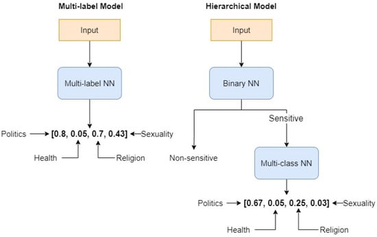 Table 6. Comparison between the multi-class neural network of the hierarchical model and the flat multi-label model.