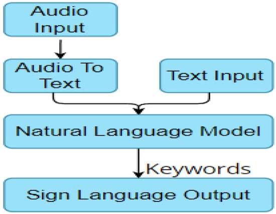 Figure 4 shows the system architecture. The user has an option to enter the input either by text or by audio. The input is processed through the natural language model designed by the authors and keywords are given as the output. If the text within the keywords contains phrases or a combination of multiple words for which the sign language video is present in the database, then those videos are shown for such casesotherwise, the keywords are tokenized further into words or letters.