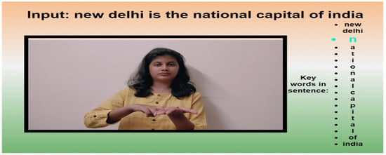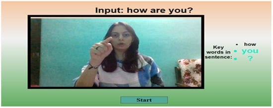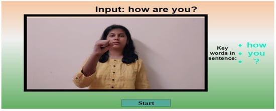 In Case 9 (as shown in Figure 19 and Figure 20), the user enters “How are you”. The sentence/keywords after applying NLP and ISL grammar rules is “How you”. In this, “are” is removed, as it is a stop word. Since there is no video present in the database for “How are you”, the sentence is broken into words, i.e., “how” and “you”.