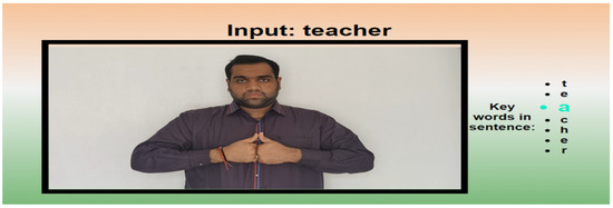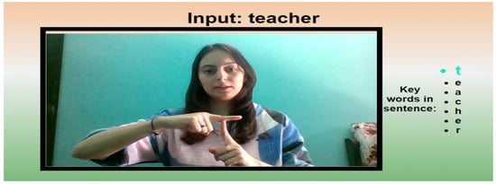 In Case 3 (as shown in Figure 10 and Figure 11), the user enters “Teacher” as the input. There is no video present in the database for “Teacher”; therefore, the system breaks the input into letters and shows the videos for each individual letter.