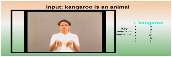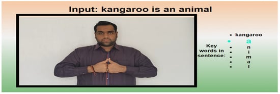 In Case 5 (as shown in Figure 13 and Figure 14), the user enters “Kangaroo is an animal”. The sentence/keywords after applying NLP and ISL grammar rules is “Kangaroo animal”. In this, “is” is removed, as it is a stop word. The following videos are shown to the user.