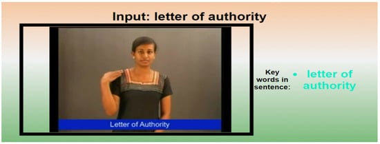 In Case 6 (as shown in Figure 15), the user enters “Letter of authority” as the input. The video for the entire input is present in the database and therefore only the video which depicts “Letter of authority” in sign language is shown to the user.