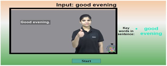 In Case 10 (as shown in Figure 21), the user enters “Good Evening” as the input. The video for the entire input is present in the database and therefore only the video which depicts “Good Evening” in sign language is shown to the user.
