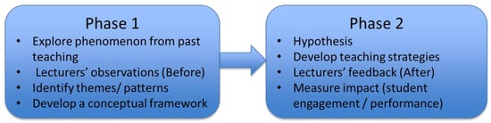Lecturers’ observations through smart classroom activities “before and after” are compared through a two-phase iterative process as shown in