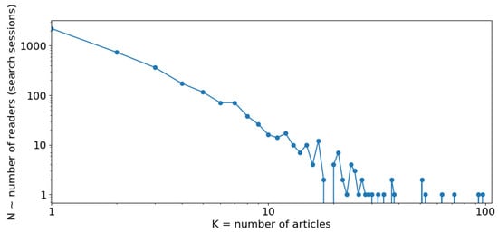 N and K values for one block of user sessions: quite a few people read more than ten articles while most readers read only one or two articles.