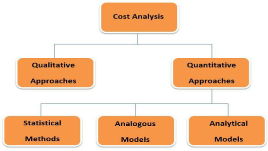 The scale method is applicable in the prevailing technologies, where different dimensions characterize the products. These evaluations of the technical parameters are the basis of the precondition of the method. The evaluation is compared with that of other completed projects, making this method a combination of analog and parametric approaches, benefiting from cost assumptions based on parameters considered interactive through a linear function [30]. The statistical method has wide applicability; in this case, the activities are divided into different areas through which the final mathematical formulas are subsequently constructed. The model is composed of data on technical specifications, the relationship between data and final variables, constants, and cost estimation formulas. Thus, mathematical calculation refers to the relationship between the final cost and a limited set of technical parameters. We can say that some of the parameters are physical and dimensional values, and at the level of parametric methods, the most predominant are analysis, regression, and optimization techniques. Even parametric cost estimation methods have technical problems in that they benefit from all parameters in the early stages, leading to uncertainty in the results. To obtain viable results, at least five or six similar regression cases should be considered to arrive at the closest estimated cost. However, the methods are considered extremely useful in cost estimation due to how the required tasks are performed [31].