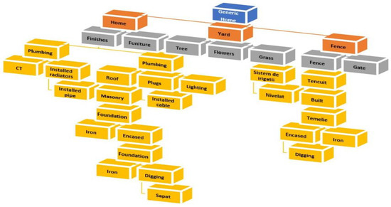 According to studies, the degree of complexity offered by the Coestim application is extremely high, trying to combine all the features and parameters that a person who wants to build or renovate a home needs. The research focused on defining the clear requirements of a system dedicated to the design and simulation of construction estimates, respectively, and the simulation of defined projects. We can say that we have arrived at a basic application architecture that highlights the most important performance characteristics using software tools. The proposal of the Coestim simulator is based on extremely complex elements in terms of properties and characteristics, increased flexibility with external data, and extremely short times in processing the request. Hierarchy and traceability within the Coestim solution were and are necessary to define the extended viability of the solution. For each hierarchical level, new services are defined and gradually published, outlining a list of resources and one of the services, considering their concatenation at the request of the user. All these features of the Coestim application are based on the intensive study of the current market, and also on the lack of applications dedicated to construction estimates that combine e-commerce with construction engineering and the sharing economy. The Coestim application meets all the necessary conditions to become a practical solution in today’s society through the modularity and accumulation of functions it offers. The architecture regarding the hierarchical structure of a construction project can be seen in Figure 3.