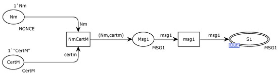 Node function N = Nm→NmCertM: (Nm,NmCertM); CertM→NmCertM: (CertM,NmCertM); NmCertM→Msg1: (NmCertM,Msg1); Msg1→msg1: (Msg1,msg1); msg1→S1: (msg1,S1);