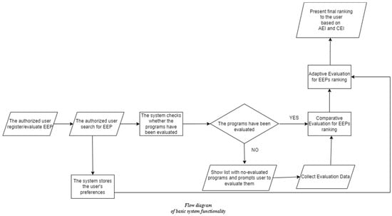 The function “Personalized Search—Final Proposal of EEPs” initiates the calculation of the Unified Evaluation Index, which is used for the final ranking of EEPs. We consider that this final ranking is the best available proposal since it manages to combine the evaluation based on the features of the program with the evaluation based on the user’s preferences.