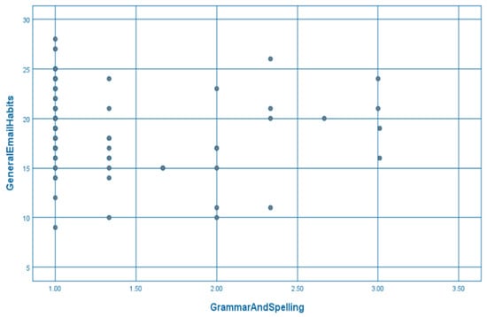 Scatterplot of participants’ general email habits and cyber sextortion susceptibility scores when attention was focused on grammar and spelling.