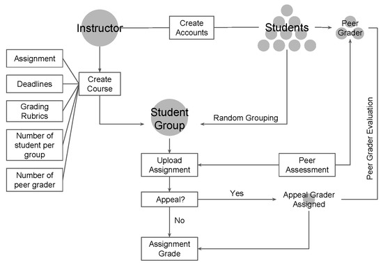 Despite all the aforementioned benefits, SGLAs are underutilized in higher education, resulting from a lack of coherent instructional design, collaborative activity design, and technology support for SGLAs [18,19]. In addition, SGLAs would lay extra burdens on instructors who should undertake different responsibilities including class administration, group facilitation, and oversight. Such burdens make it more intimating and challenging for instructors to adopt SGLAs in classrooms. Therefore, if SGLAs are going to be effectively integrated into instructors’ practices, we must reduce instructor burdens for adopting this collaborative learning technique. Although previous studies showed that some learning management systems have been utilized to facilitate SGLAS, such as Moodle, on which collaborative learning activities including forums, vocabulary, and databases could be done by students [20]; Canvas [21]; or other more mundane tools such as Media Wiki, Google docs [22], and Blogs [23], none of the tools could reduce instructors’ burdens by automating instructors’ workflow activities such as grading, managing student groups, etc. Even though the Moodle workshop tool [24] and Canvas [21] can enable peer assignment reviews, they cannot enable students’ flexibility to change groups or conduct appeals if they are unsatisfied with the peer assessments.
