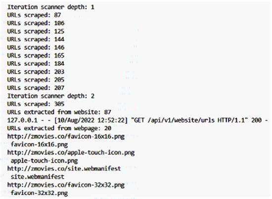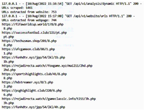 Once the configuration was complete, the dispatcher API and requester client of the IITMAF software solution were executed, initiating the iterative URL collection as shown in