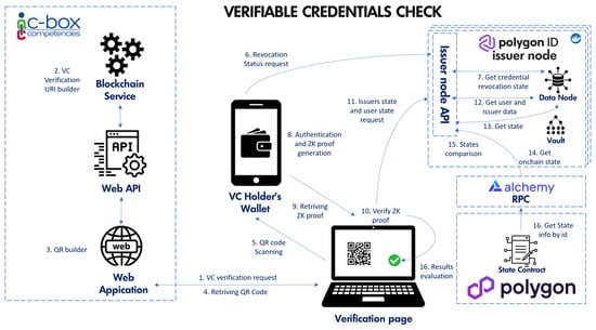 The Verifier finally checks that the Issuer’s credential status and the User’s status are still valid (8–14) and have not been revoked.