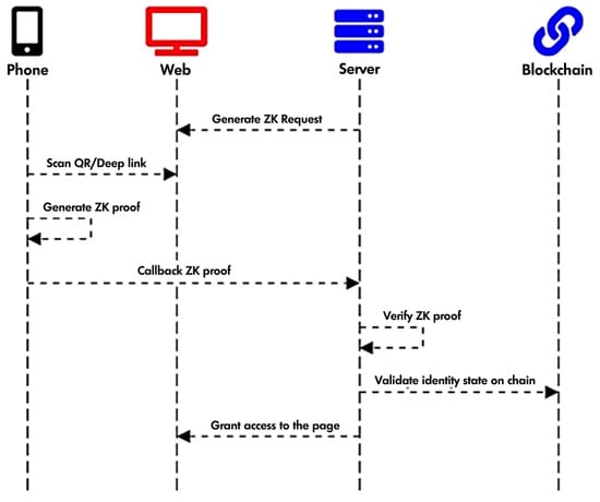 Figure 10, the verifier request is encapsulated in a QR code (generate zk request) and is shown to the user. The user scans the QR code with his/her wallet application to generate a ZKP. Note that the verification process does not involve any interaction between the verifier and the issuer that issued the claim but is a simple query to the verifiable data registry (Polygon) that verifies that the verifiable credentials that certify compliance with the required criteria are valid and not revoked. The Verifier thus obtains cryptographic proof that the user fulfils the requests without the user having to share additional information beyond that requested.