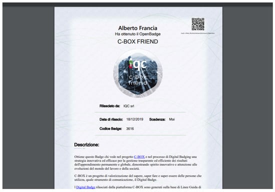 https://www.cboxiqc.com/, accessed on 23 October 2023), an existing application for the management of digital competencies developed by Italian Quality Company s.r.l. (IQC) in technological partnership with Pomiager s.r.l. C-Box