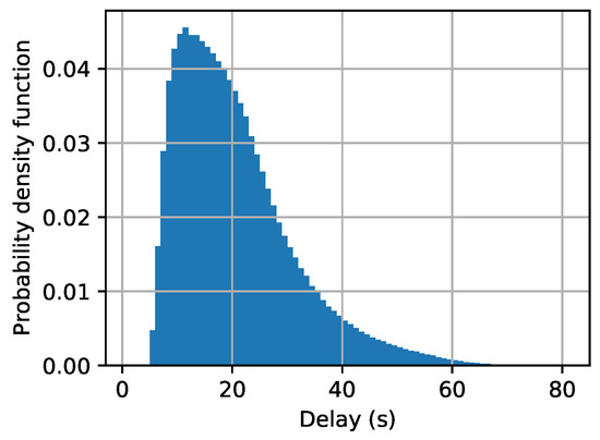 Figure 3 shows the probability density function of the latency (i.e., ) among all the clients in a specific time instance. The median value in the clients’ latency is around 10 s, so we initially set up the deadline of a global iteration to be 10 s, and we will change the value of , later, to see how it affects the performance of LESSON.