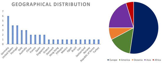 Figure 3 displays the geographical distribution of the primary studies. The top 10 countries with major research on XR are located in Europe, the majority of them are from Germany, followed by the United States of America (USA), as can be observed in Figure 3. In Asia, China is the leader on studies about XR, AR, and virtual environments. Latin America is represented in the geographical distribution of XR studies by emerging countries like Mexico and Brazil. This geographical distribution demonstrates the global interest in technological development using innovative technologies on XR.