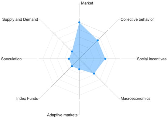 The valuation of a token is directly related to the balance between the number of tokens available (supply) and the desire of individuals to own them (demand). Social incentives such as participatory governance can encourage people to hold more tokens, thus increasing their demand. Other influencing factors are the market conditions as well as economic factors such as interest rates, government policies, or regulation in general. People collectively may follow a particular trend that can create upward and downward price movements. Speculation drives price volatility as traders and investors focus on expected price movements instead of the token’s utility. Finally, token inclusion in index funds can boost investor demand. Figure 7 spider diagram visualizes and compares the influence of Table 3 elements on token valuation considering the number of identified state of the art papers.