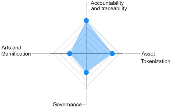 The incorporation of tokens to the blockchain ledger creates a new layer of functionality, as tokens can serve as a medium of exchange, represent physical assets, and possess value, supporting various economic activities. Cryptocurrencies are a new form of decentralized digital money and a subset of tokens that may have evident usefulness as a means of storing value []. They are designed to facilitate the transfer of value between parties using their unit of account []. Cryptocurrencies pose significant risks for users as they feature high volatility and are less regulated than traditional financial markets, thus not offering a stable medium of exchange []. Asset tokenization is another significant economic innovation brought by blockchain technology, with Ethereum playing a crucial role in introducing and popularizing it []. The Ethereum blockchain platform supports the development of decentralized applications through smart contacts that are executable source codes enforcing the terms and conditions of specific agreements []. It enables the creation of tokens instead of cryptocurrencies, that might symbolize possession of tangible assets, right to access, or alternative manifestations of worth [,]. The precise characteristics of blockchain tokens and the tokenization process may differ based on the intended purpose of their creation []. They can correspond to physical assets such as gold, real estate, and art, or abstract assets such as voting rights, ownership rights, or content licensing. The security tokens can give the holder a share or a vote in a company []. Utility tokens are a way of accessing a product or service, usually on a specific blockchain network, facilitating the operations of a decentralized market, covering transaction fees, or governing a decentralized autonomous organization or system [].