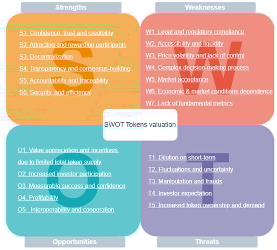 Research on tokens is still in its early stages compared to traditional markets, however, there is a greater diversity of blockchain tokens which makes the technical and economic decisions challenging. Different tokens may have unique technical features, use cases, and economic implications, requiring careful consideration and expertise when making decisions related to their creation and economic valuation. Various types of tokens use cases have been examined, such as non-fungible tokens (NFTs), decentralized finance (Defi), gamification, energy, supply chain, and arts [,]. They may offer some relevant economic and business advantages. Tokens ease access and participation in markets as they can be traded by anyone with access to a digital exchange, improve the liquidity of existing markets, allowing investors to enter and exit positions at a fair price, reduce the transaction costs associated with asset management and automatize the transaction processing and transfer of value. However, a comprehensive overview of the current state of research on token classification, creation, and valuation is necessary to help users and organizations make sound technical and economic decisions for reducing the inherent risks when working with blockchain tokens. Any asset that has value to someone, can be owned, and can be part of a larger asset market can be tokenized []. However, the tokens’ valuation and price determinants are still challenging due to factors such as lack of intrinsic value being exposed to speculative processes, volatility, different valuation dynamics based on their utility, lack of regulation, etc. [,]. This makes them risky, as there is no oversight to ensure that the tokens are being traded fairly and transparently.