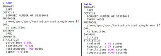 Simulation results from OFMC and CL-AtSe on AVISPA.