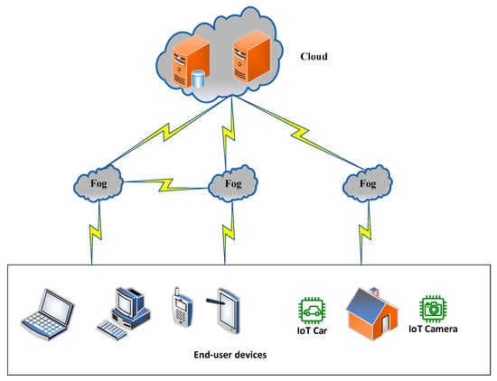 The three-tier architecture shown in Figure 3 is the most widely utilized one in fog computing []. The tiers are presented as follows:
