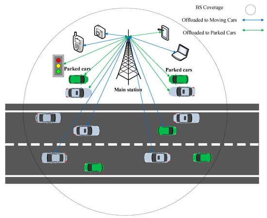 Vehicular Networks (VNs) are a crucial component of the IoT ecosystem. These networks are designed to facilitate communication and data exchange among vehicles, as well as between vehicles and roadside infrastructure or remote servers. VNs play a pivotal role in enhancing road safety, traffic management, and overall transportation efficiency. The study of VNs has advanced to new heights thanks to the integration of computers, transportation, communication, and vehicular technology []. According to available data, the primary challenge that VNs are encountering is the integration of data processing, communication networks, resource allocation, and applications, which has severely hampered the growth of a fully automated Intelligent Transportation System (ITS) []. In traditional cloud-based vehicular architectures, vehicles connect to the cloud via Roadside Units (RSUs) and related network devices such as switches and routers. Servers running in the cloud are responsible for computing tasks and making decisions for the VNs. However, such a paradigm does not scale well, as it makes servers overloaded and response times unpredictable and hence unsuitable for applications that require real-time processing, such as autonomous driving.
