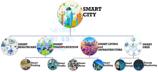 Smart city applications have grown rapidly with sensory manufacturing advances and wireless networking innovations [17]. Figure 4 presents the main smart city applications.