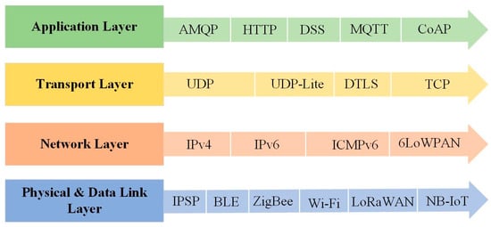- Bayılmış, C.; Ebleme, M.A.; Çavuşoğlu, Ü.; Küçük, K.; Sevin, A. A Survey on Communication Protocols and Performance Evaluations for Internet of Things. Digit. Commun. Netw. 2022, 8, 1094–1104. [Google Scholar] [CrossRef]