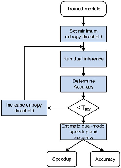 The tool developed in Python receives two trained models with different accuracy levels and the accuracy range. It then finds the fastest multi-model configuration with an accuracy within the accuracy range, according to the design flow illustrated in Figure 2.