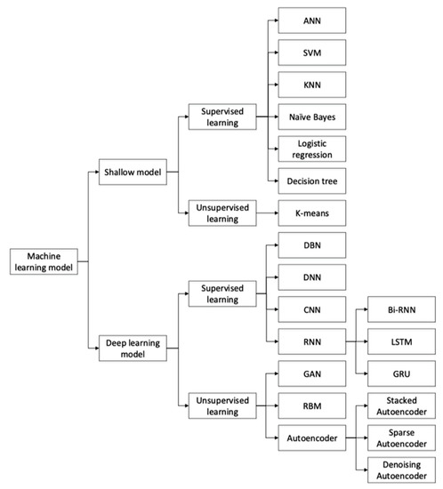 Unsupervised learning recovers useful feature information from unlabeled data, making training material much more straightforward. On the other hand, unsupervised learning approaches often perform worse in terms of detection than supervised learning methods. Figure 2 shows the most prevalent ML techniques used in IDSs.
