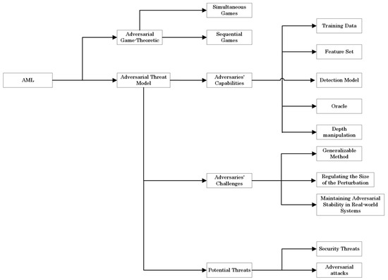 This paper covers AML in two components: the adversarial game-theoretic and adversarial threat models. The adversarial threat model is detailed in three components: adversaries’ capabilities, adversaries’ challenges, and potential threats, as demonstrated in Figure 4.