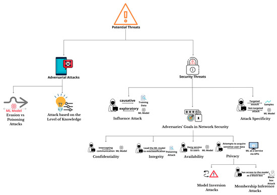 The following security threats in ML can be classified as adversarial attacks based on their intent to attack the ML/DL model [21,35]:
