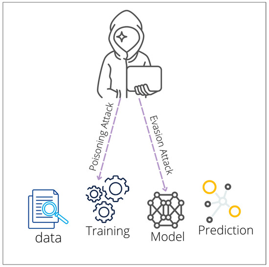 Adversarial learning is a type of ML in which two entities, the learner and the adversary, try to develop a prediction mechanism for data relevant to a specific problem but with various goals. The goal of learning the prediction mechanism is for the learner to predict or classify the data accurately. On the other hand, the adversary’s goal is to force the learner to make inaccurate predictions about inputs in the future [19,28].