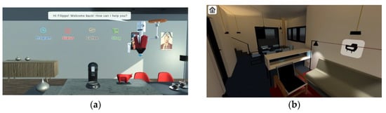 Thus, the project (See Figure 12b) stems from the need for a precise category of users (i.e., students and full-time workers) who have little time to devote to cleaning the house. The interaction between the user and the robot vacuum cleaner occurs through gestures, as the user indicates the environment and/or the path that the robot vacuum cleaner must take through simulated AR. The user can also control the robot’s path in the Metaverse.