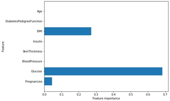 Figure 7 shows that the most significant feature is the glucose level as shown in the figure. Each feature is presented as a binary digit for predicting targets or not. Figure 7 illustrates the most important extracted feature.
