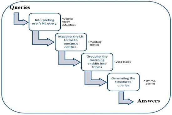 To translate natural language queries into SPARQL, we believe that a querying process that consists of four steps should be followed, as shown in Figure 1.