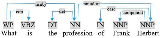 In this section, we present the query structure as the sequence of the query’s basic grammatical elements such as subject, verb, and so on. To identify the query structure in this context, we must process its word order, representing the specific sequence of words in the query. For example, the query «what is the profession of Frank Herbert» has the word order «WP - VBZ - DT - NN - IN - NNP - NNP» from the structure «Wh-word + Auxiliary/Modal verb + subject + rest of the sentence».